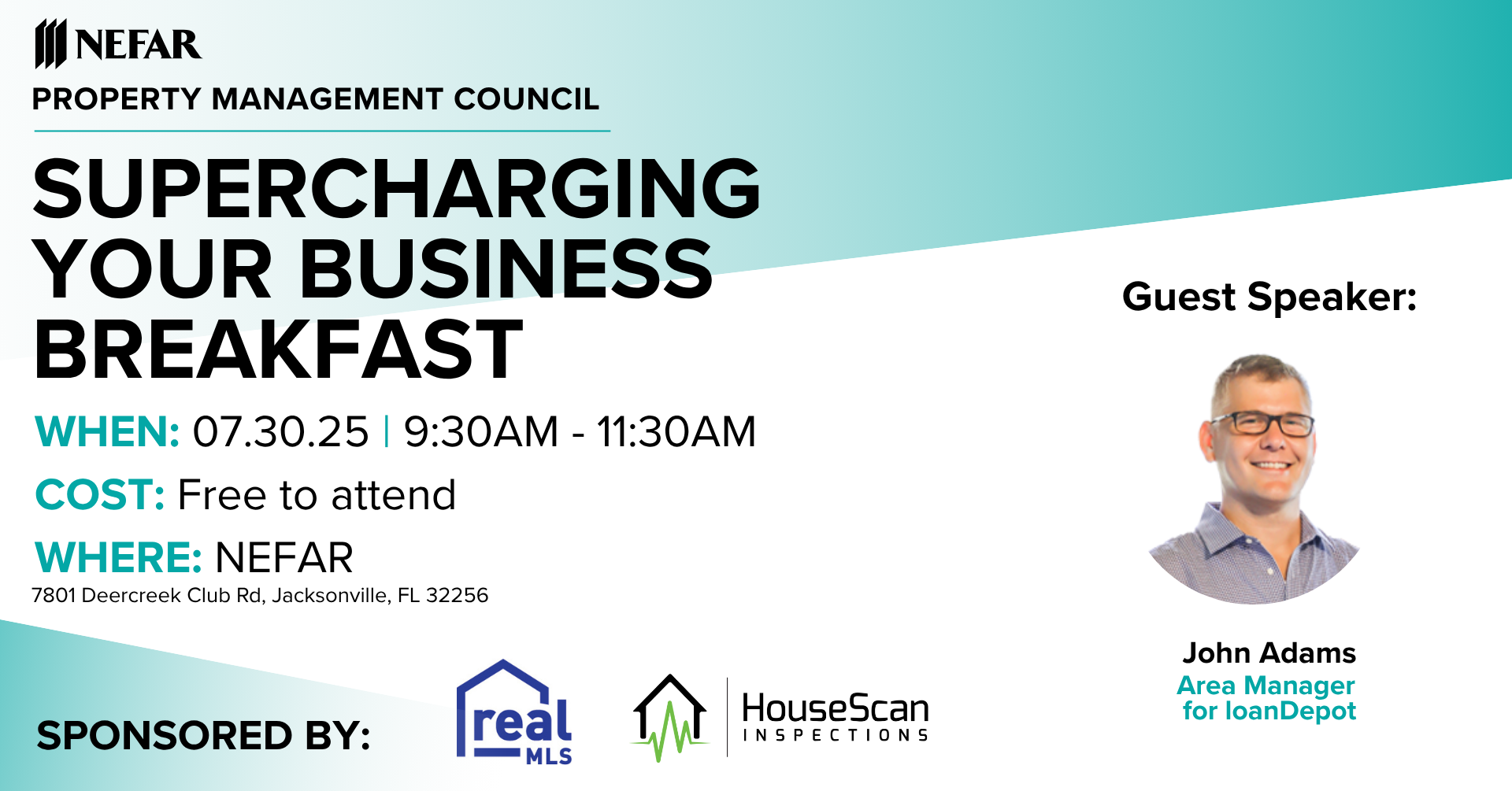 NEFAR members are invited to an exclusive Property Management Council event on July 30 from 9:30 to 11:30 a.m., featuring guest speaker John Adams, Area Manager for loanDepot. In this inspiring and informative session, Adams will share how property management and real estate investment can be the key to transforming your career trajectory from “rags to riches.”
