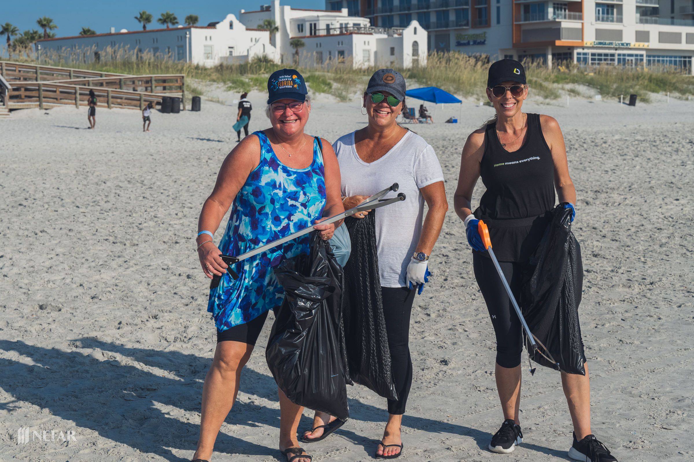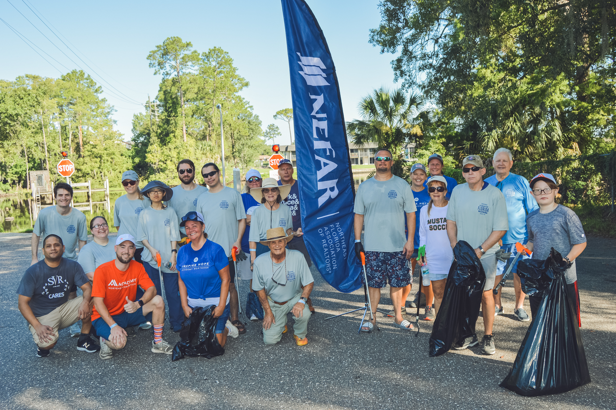 More than 200 REALTORS®, friends, family, and members of the public gathered at 11 different clean-up sites throughout Northeast Florida to take part in NEFAR’s Second Annual Clean-up Florida Waterways event on July 23, 2022. The effort to rid areas of the St. Johns River, Intercoastal Waterway, and Beaches in Northeast Florida was inspired by Florida Realtors’ month-long Clean-up Florida’s Waterways initiative. Participants in the clean-up effort worked hard to rid the region of 2,000 pounds of debris, including 10 car tires that were pulled from the St. Johns River. More than 100 celebrated their hard work at an after-party sponsored by the NEFAR Community Affairs Task Force at Veterans United Craft Brewery.