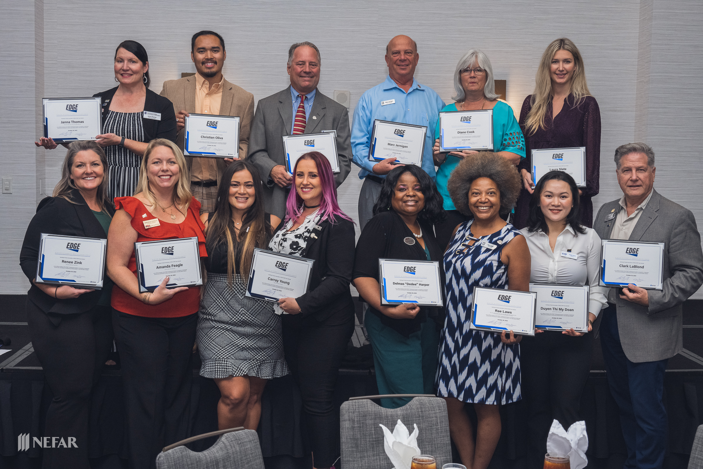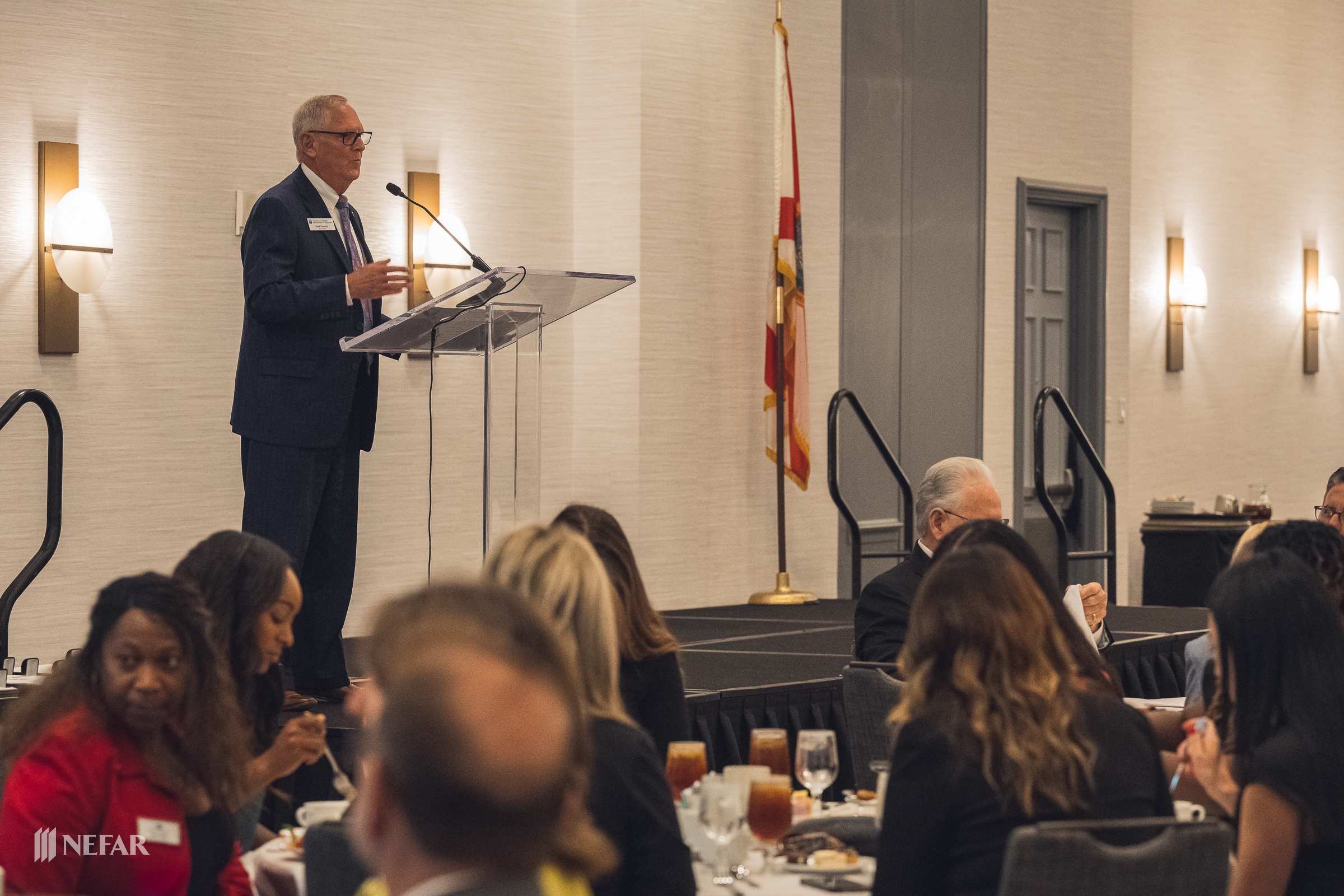 NEFAR 2022 Fall Annual Business Meeting at Marriott Jacksonville on 10/26/22 with guest speaker Ben Kjar. There was a buffet lunch and members were able to hear from NEFAR’s 2022 president Mark Rosener on the state of the association. The newest members of NEFAR’s EDGE™ Professional Society were introduced and the Officers and Board of Directors elected for 2023 were recognized.