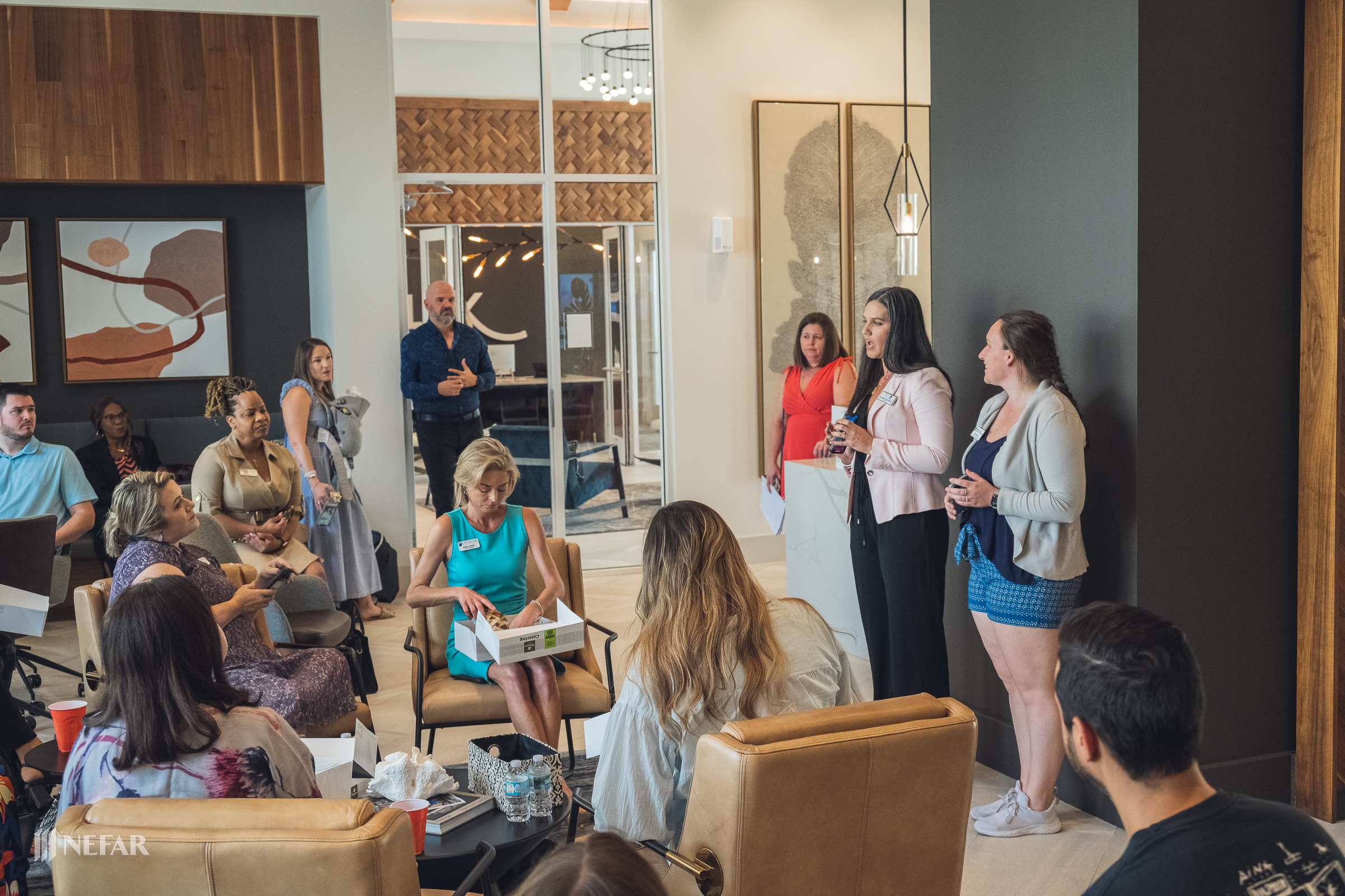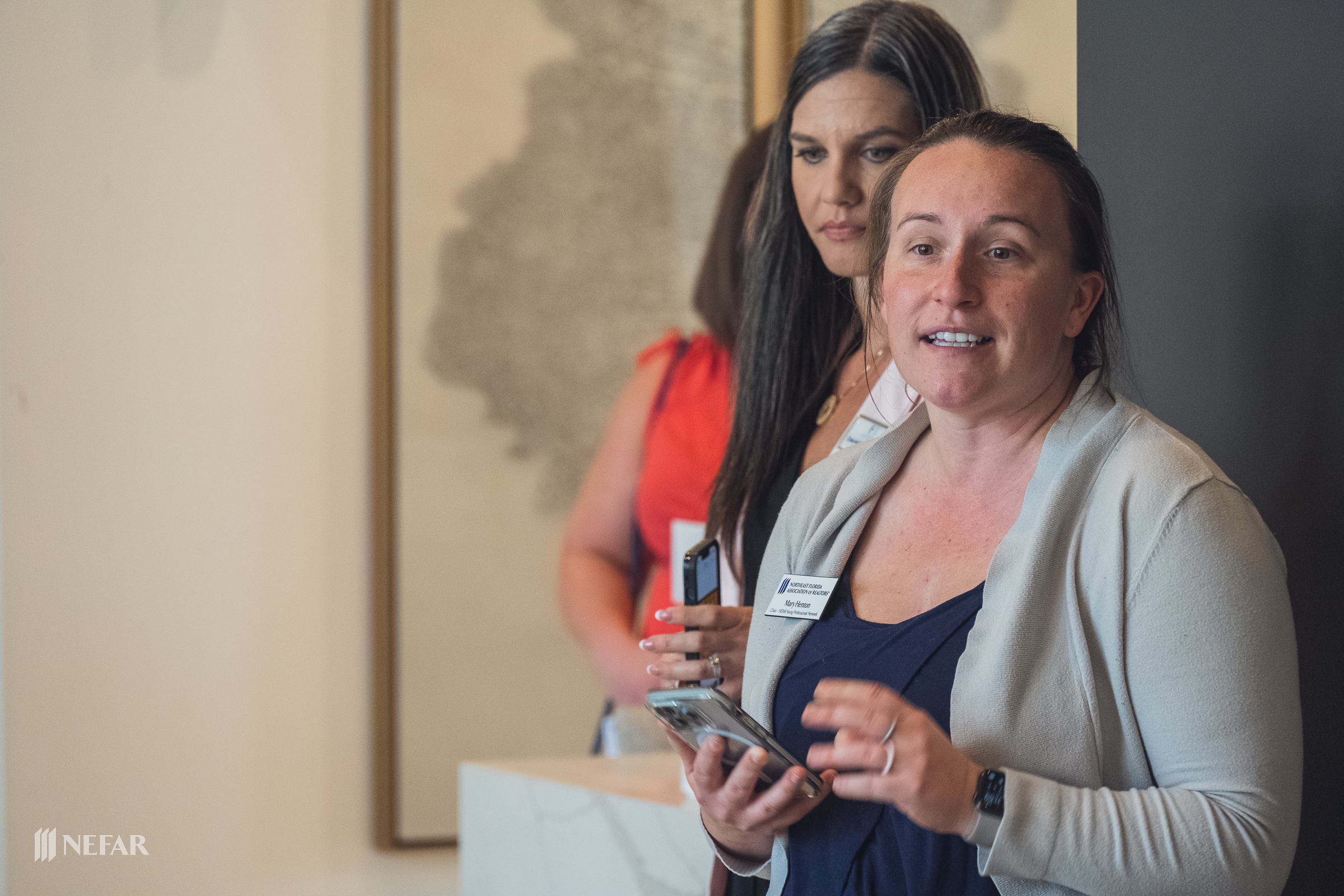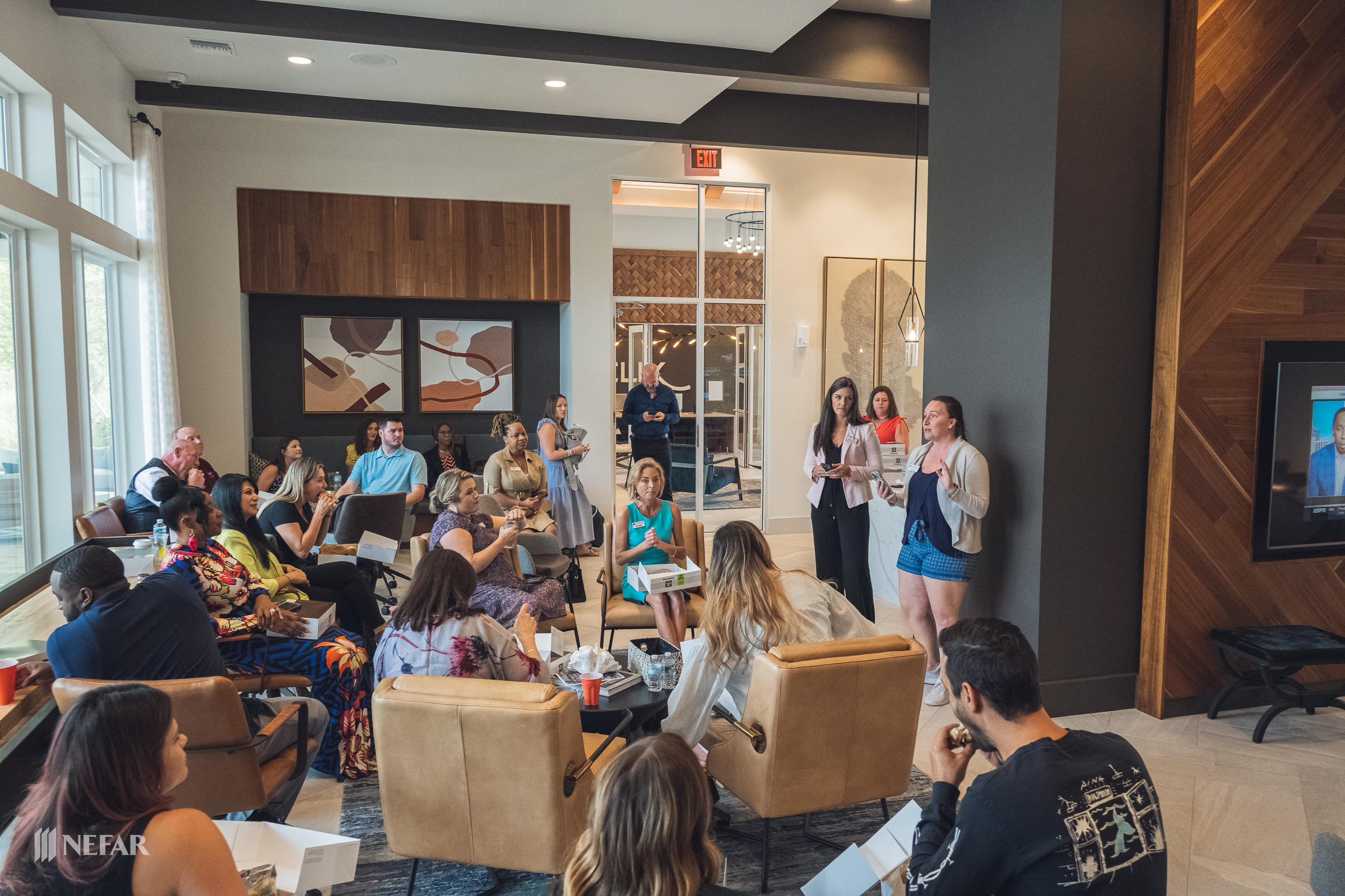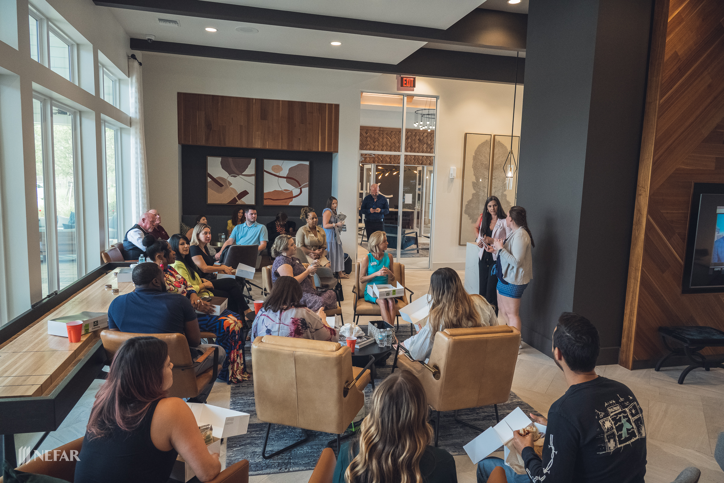 NEFAR YPN, Lunch & Learn on 03/07/23 at the Felix apartments with guest speakers Ali Griffin, title attorney from Head, Moss, Fulton & Griffin, P.A. and Wade Swindell of Atlantic Trust Mortgage. Attendees were also able to get free head shots by K-Images360.