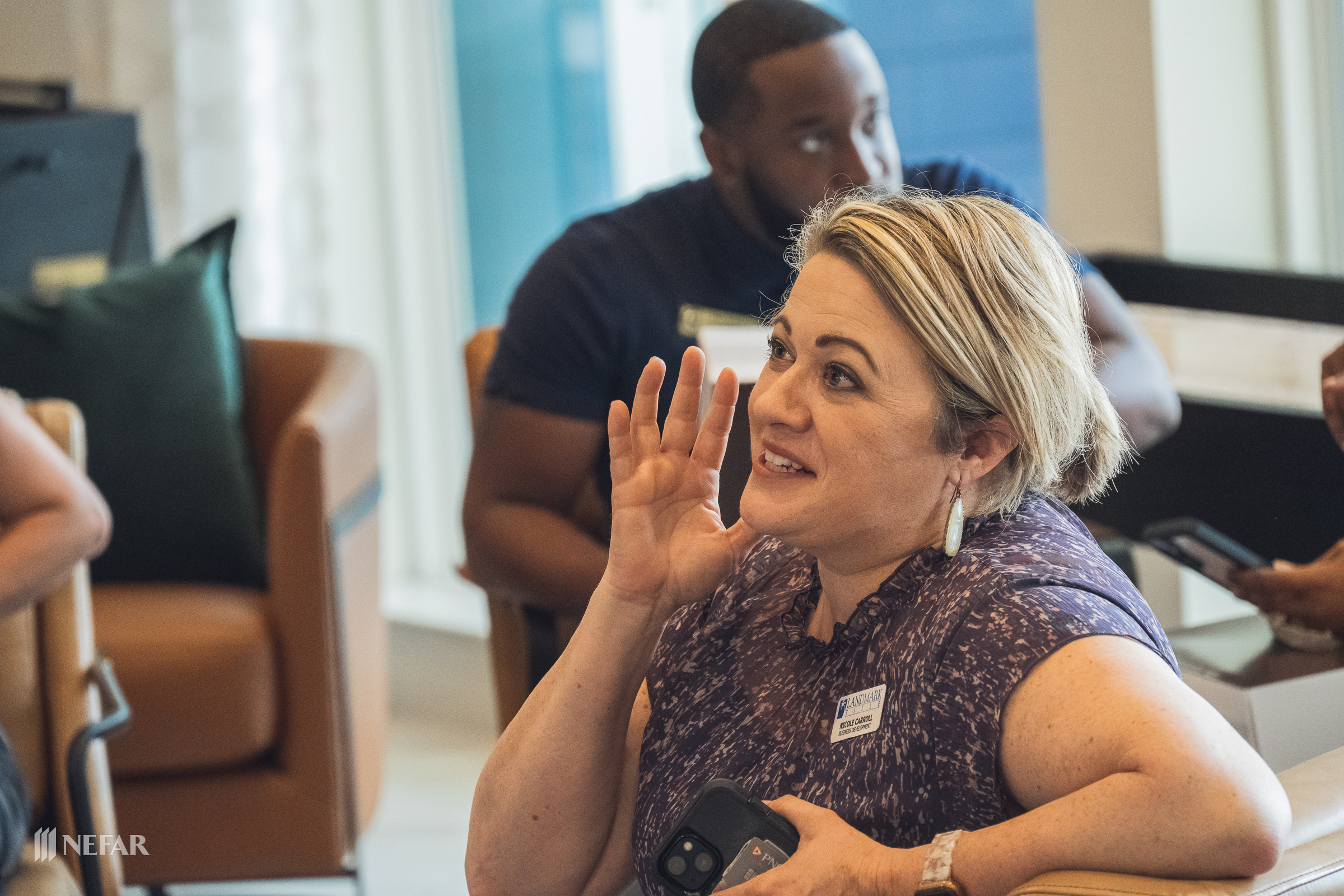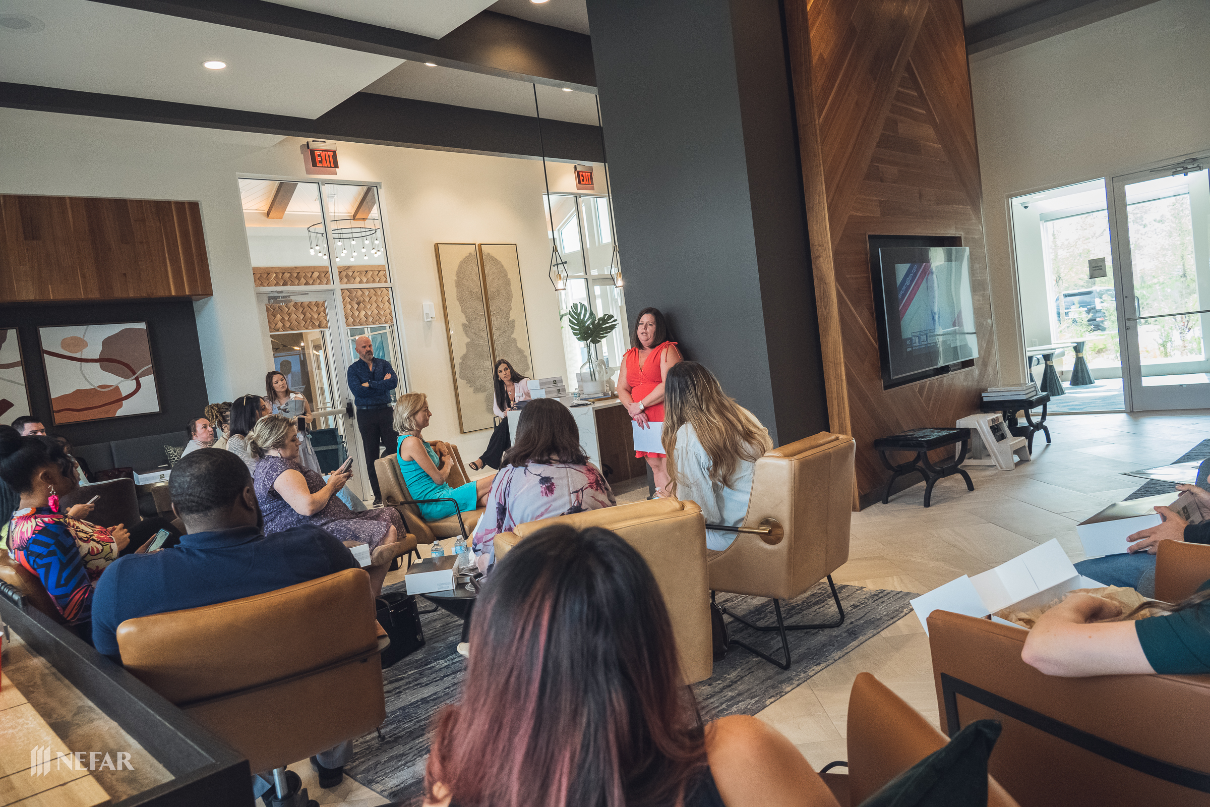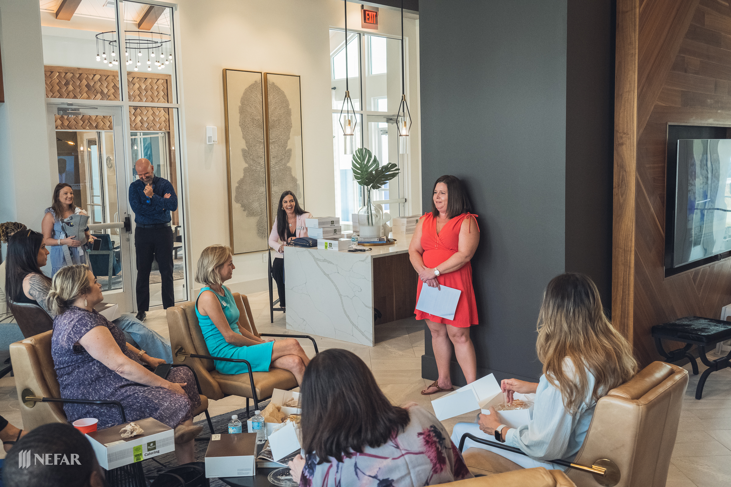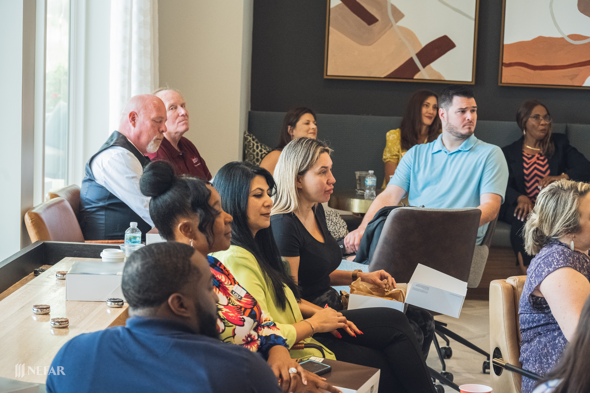 NEFAR YPN, Lunch & Learn on 03/07/23 at the Felix apartments with guest speakers Ali Griffin, title attorney from Head, Moss, Fulton & Griffin, P.A. and Wade Swindell of Atlantic Trust Mortgage. Attendees were also able to get free head shots by K-Images360.