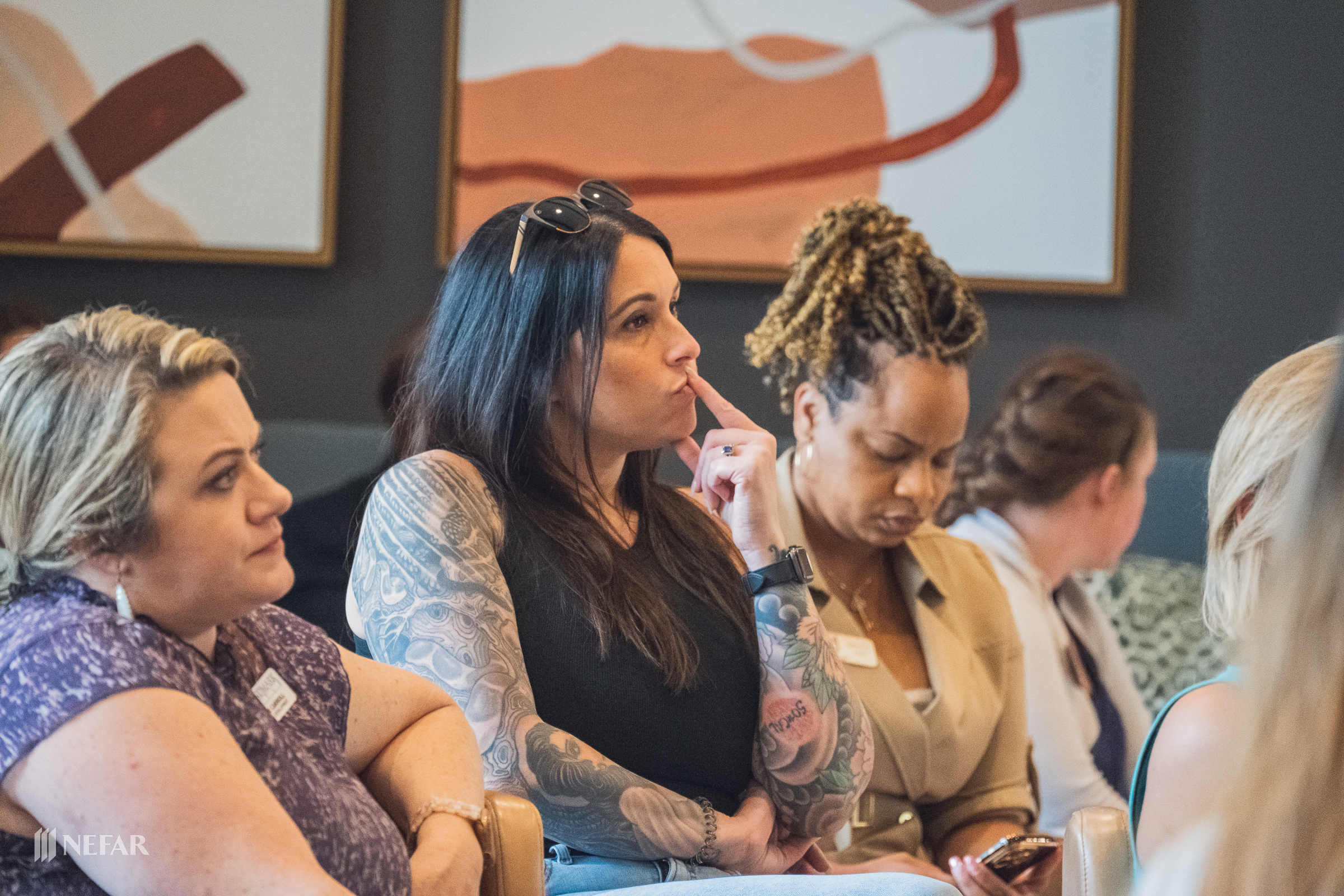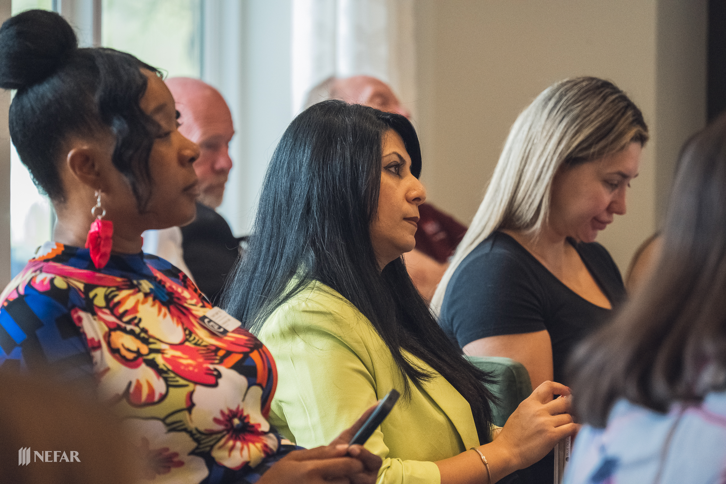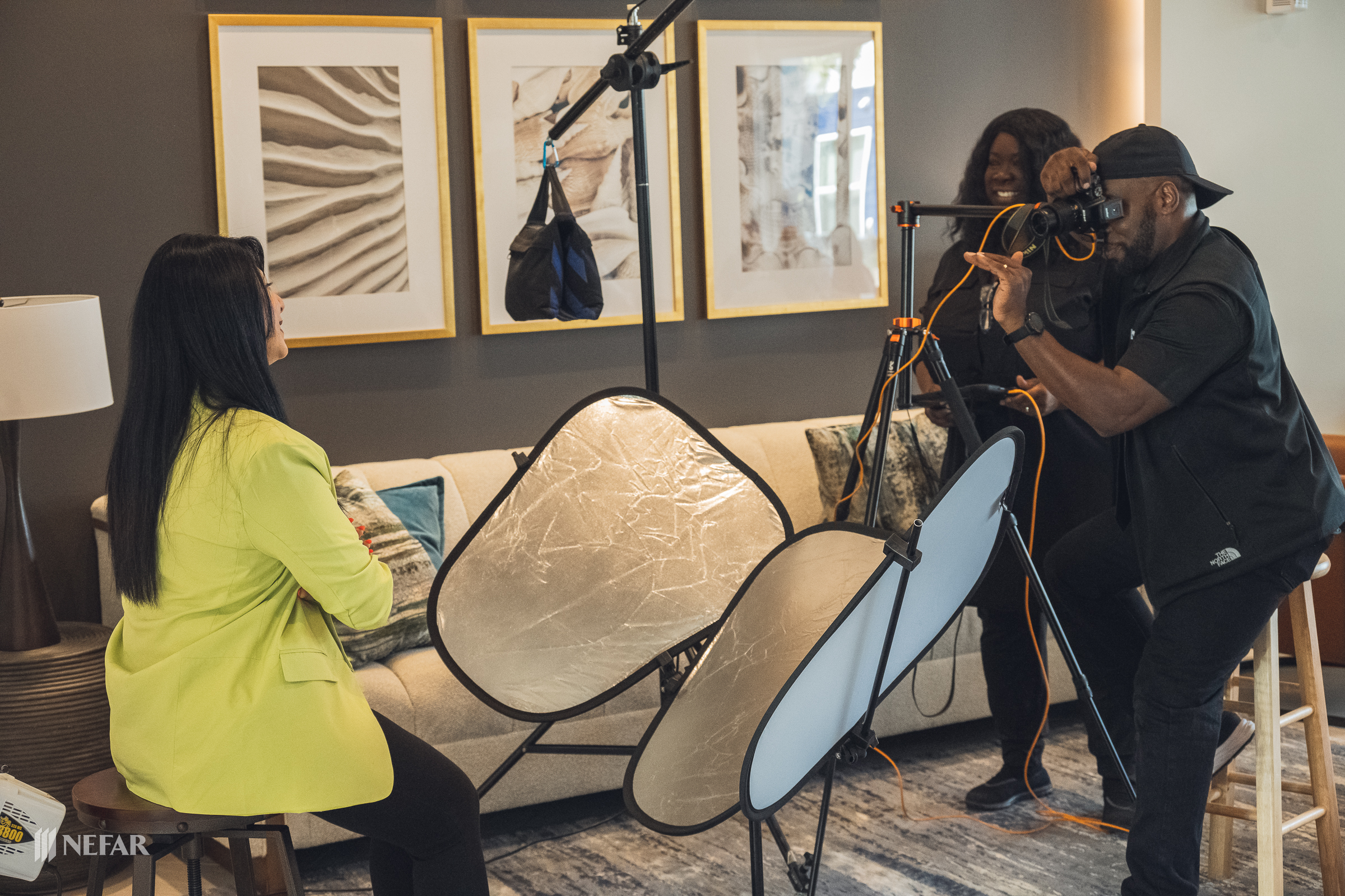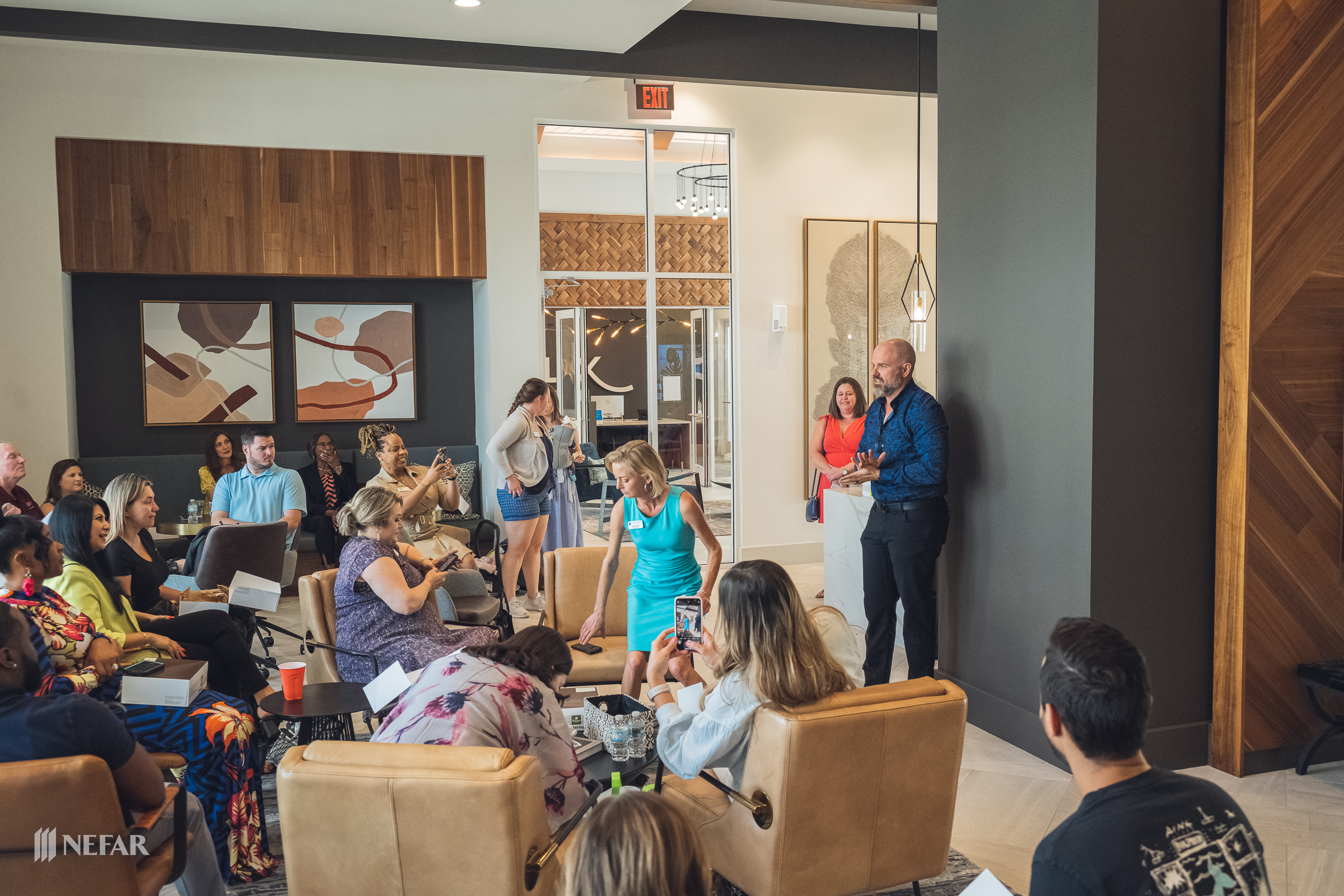 NEFAR YPN, Lunch & Learn on 03/07/23 at the Felix apartments with guest speakers Ali Griffin, title attorney from Head, Moss, Fulton & Griffin, P.A. and Wade Swindell of Atlantic Trust Mortgage. Attendees were also able to get free head shots by K-Images360.